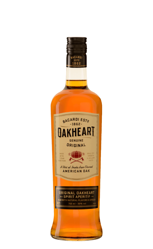 BACARDÍ rum is made with the special combination of molasses from sugarcane, yeast and water. Oakheart is a golden spiced Rum created using heavily charred oak barrels to give a creamy butterscotch flavour with a hint of smok