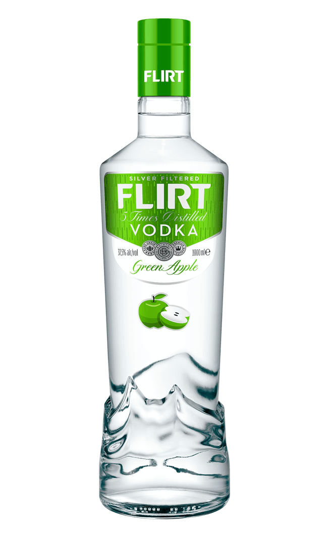 Flirt Vodka Green Apple is made from crystal clear water and selected wheat. It has an exciting aroma and taste of juicy green apples. Bulgarian Vodka FLIRT creates incomparable feelings of purity and true emotions