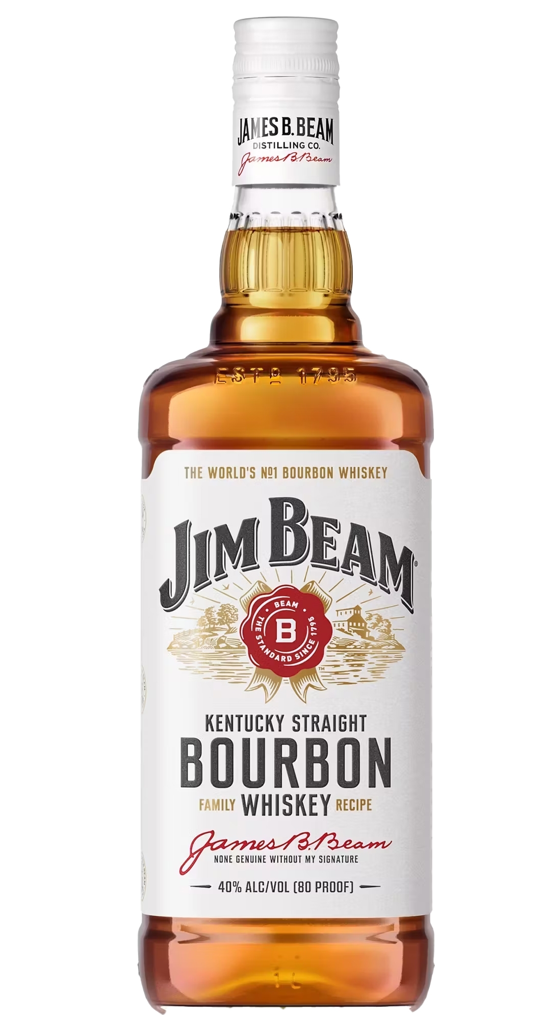 Crafted by the Beam family since 1795, Jim Beam is the world’s best-selling bourbon. The flagship “White Label” expression is distilled from a mash bill dominated by sweet Kentucky corn, proofed with limestone-filtered water, and then rested a full four years in level-4 charred new American white-oak barrels—twice the legal minimum for straight ...