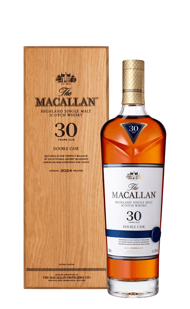 The Macallan Double Cask 30 Years Old, aged for thirty years in a harmonious union of American and European oak sherry seasoned casks, to create a unique taste and character.